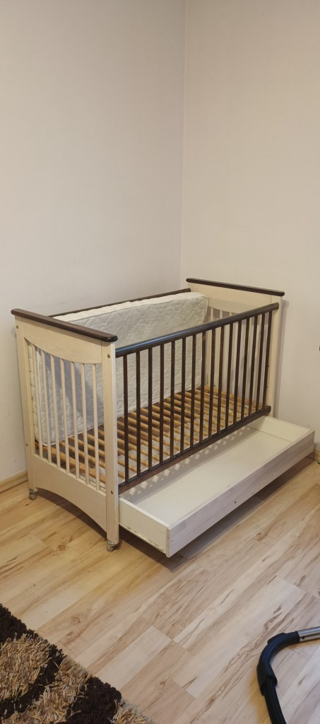 Oddam łóżeczko dziecięce z materacem w dobrym stanie. Łóżeczko z dolną szufladą na pościel i 3 stopnie regulowania głębokości